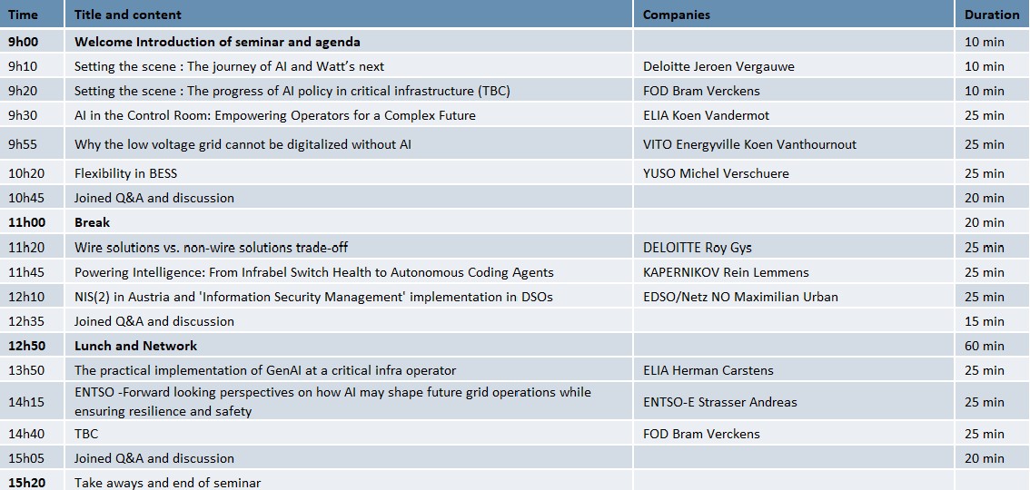 This event will bring together AI and leading experts including Jeroen Vergauwe (Deloitte), Bram Verckens (Federal Public Service Economy), Koen Vandermot (ELIA), Koen Vanthournout (VITO EnergyVille), Michel Verschuere (YUSO), Roy Gys (Deloitte), Rein Lemmens (Kapernikov), Herman Carstens (ELIA), Maximilian Urban (EDSO/Netz NO), and Andreas Strasser (ENTSO-E) to explore how AI is shaping the future of flexibility, resilience, and sovereignty in Europe’s energy systems.